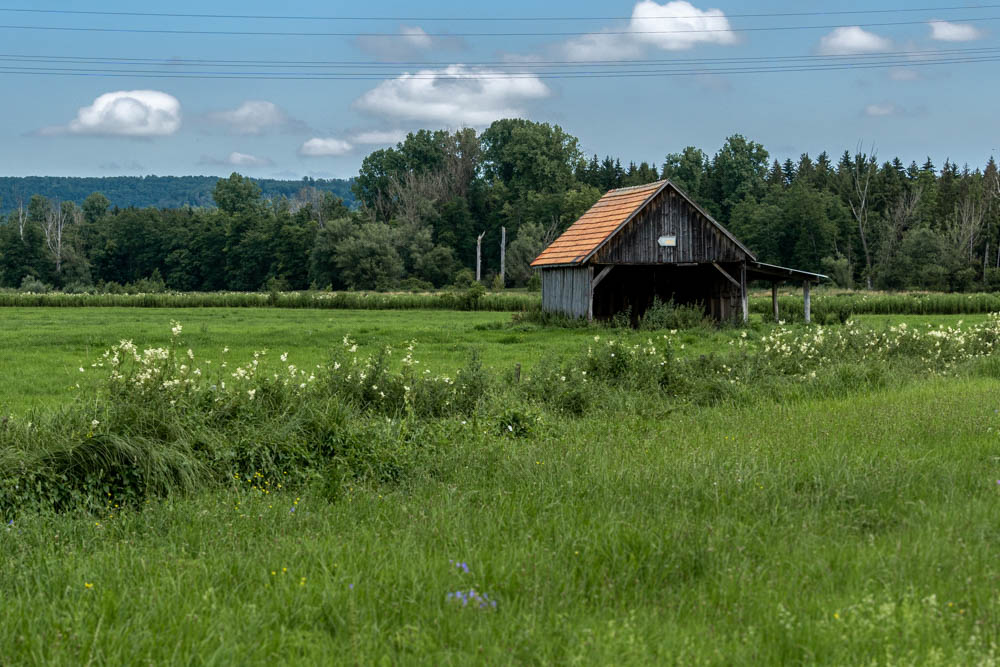 Wie folgen weiterhin dem Albtäler-Radweg entlang der Brenz in Richtung Giengen. Nach kurzer Strecke verlässt der Radweg die Brenz und es schieben sich einige Gewerbegebiete zwischen Fluss und Radweg. Nachdem die Gewerbegebiete passiert wurden, öffnet sich eine schöne Wiesenlandschaft.
