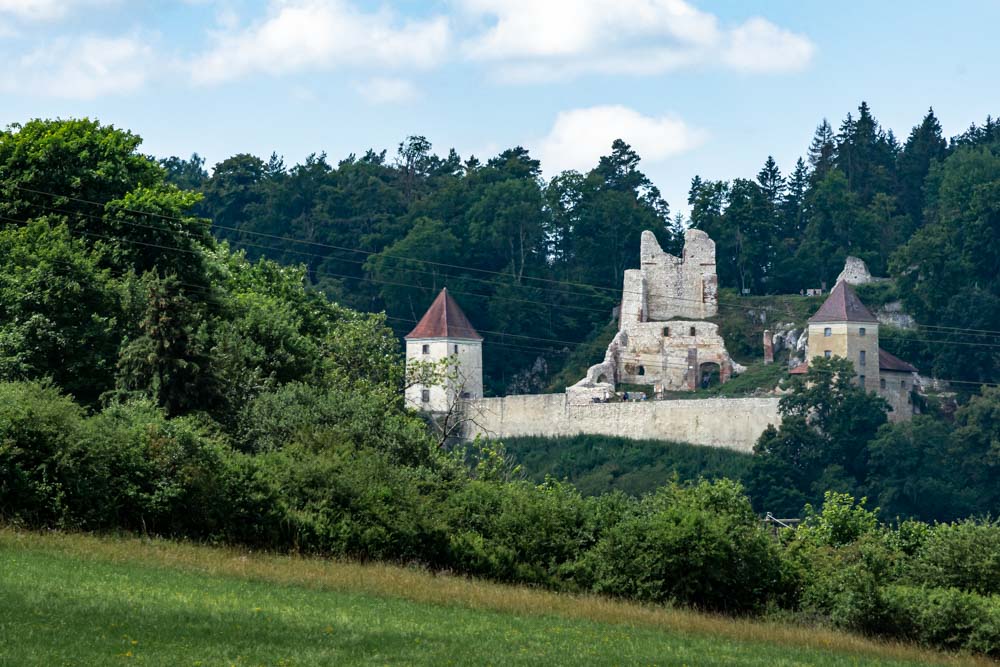 Nach der Querung der Autobahn beginnt die Gefällestrecke (10%) in den Ort Eselsburg. Im Ort lädt die Talschenke Eselsburger Tal zur Rast und Stärkung ein. Nach der Stärkung in der Talschenke fahren wir einige Meter zurück in den Ort und folgen nach rechts dem Hohenlohe -Ostalb-Radweg weiter.