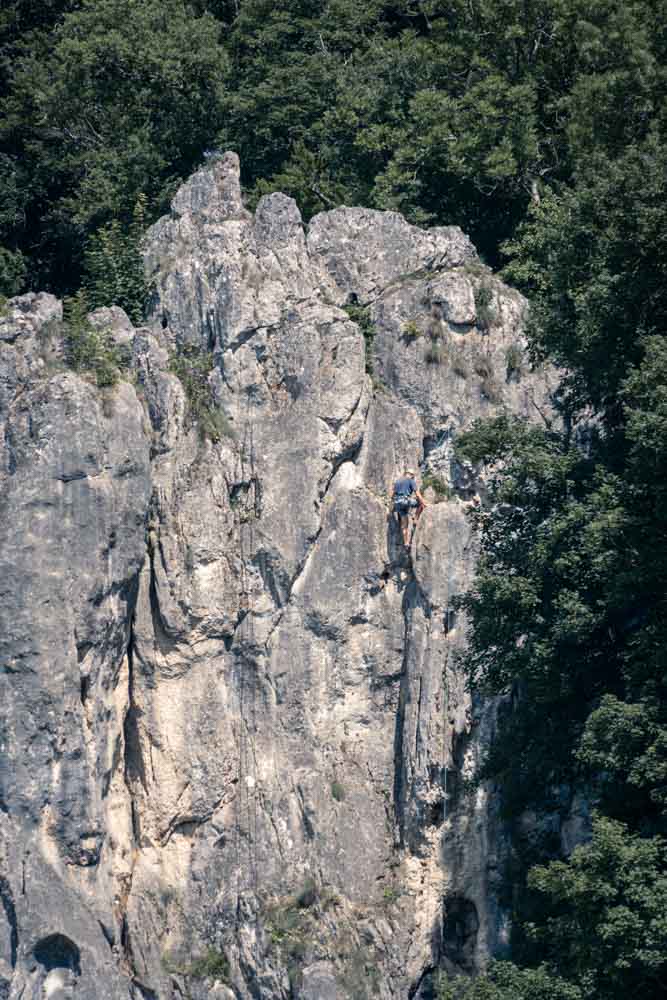 Immer wieder entlang der Brenz kann man einzelne Felsen an den Flanken des Tals finden. Diese Felsen sehen nicht nur imposant aus, sondern bieten auch Kletterfreunden die Möglichkeit ihrem Freizeitsport nachzugehen.