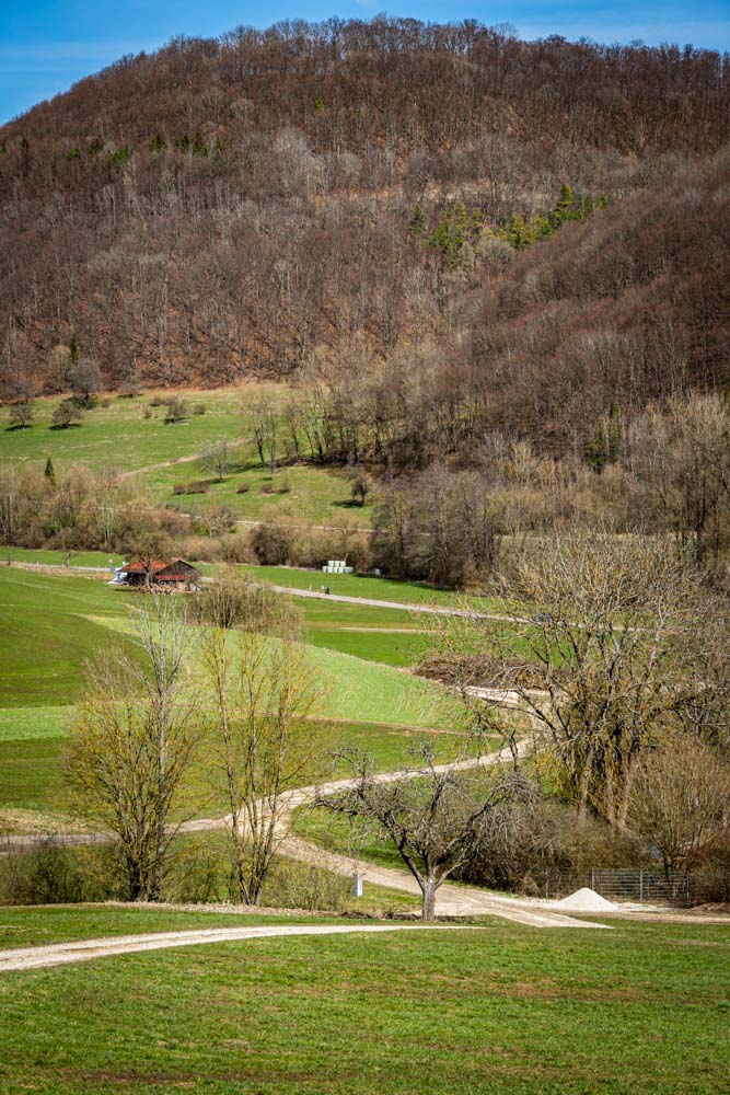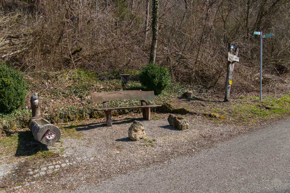 Nachdem wir uns gestärkt haben, setzen wir unsere Wanderung fort. Wir verlassen jedoch den Jubiläumsweg und folgen dem Radweg Richtung Bad Ditzenbach.