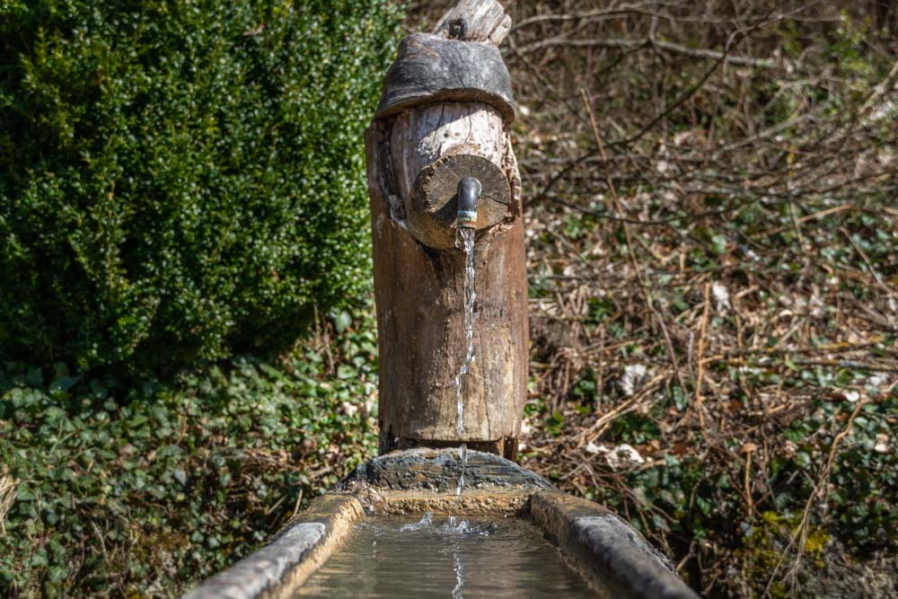 Der Weg führt uns weiter bis zur Auendorfer Straße, welche wir überqueren und den kurzen Weg nach oben zum Schliffbrunnen nehmen. Dies kleine Wasserstelle liegt auf der hälfte unserer Wegstrecke und lädt zum Verweilen ein.