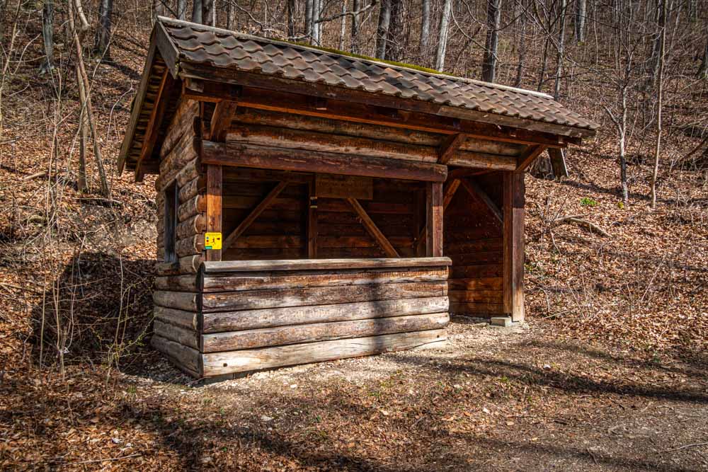 Ca. 500 m nachdem wir den Wald erreicht hatten, passieren wir eine Schutzhütte.