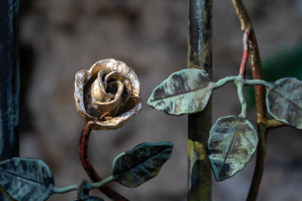 Folgt man den Kreuzweg in umgekehrter Richtung nach Bad Ditzenbach gelangt man nach kurzem an einen Wegweiser zur Mariengrotte. Beeindruckend hier auch der kunstvoll gefertigte Eisenzaun mit seinen Rosenverzierungen.